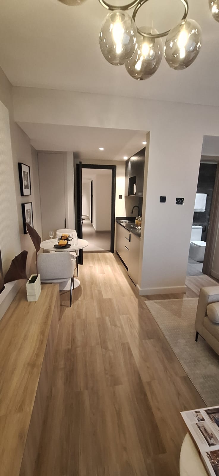 Contemporary design with a compact kitchen, refined finishes, and sweeping city views, ideal for professionals seeking modern yet practical living.