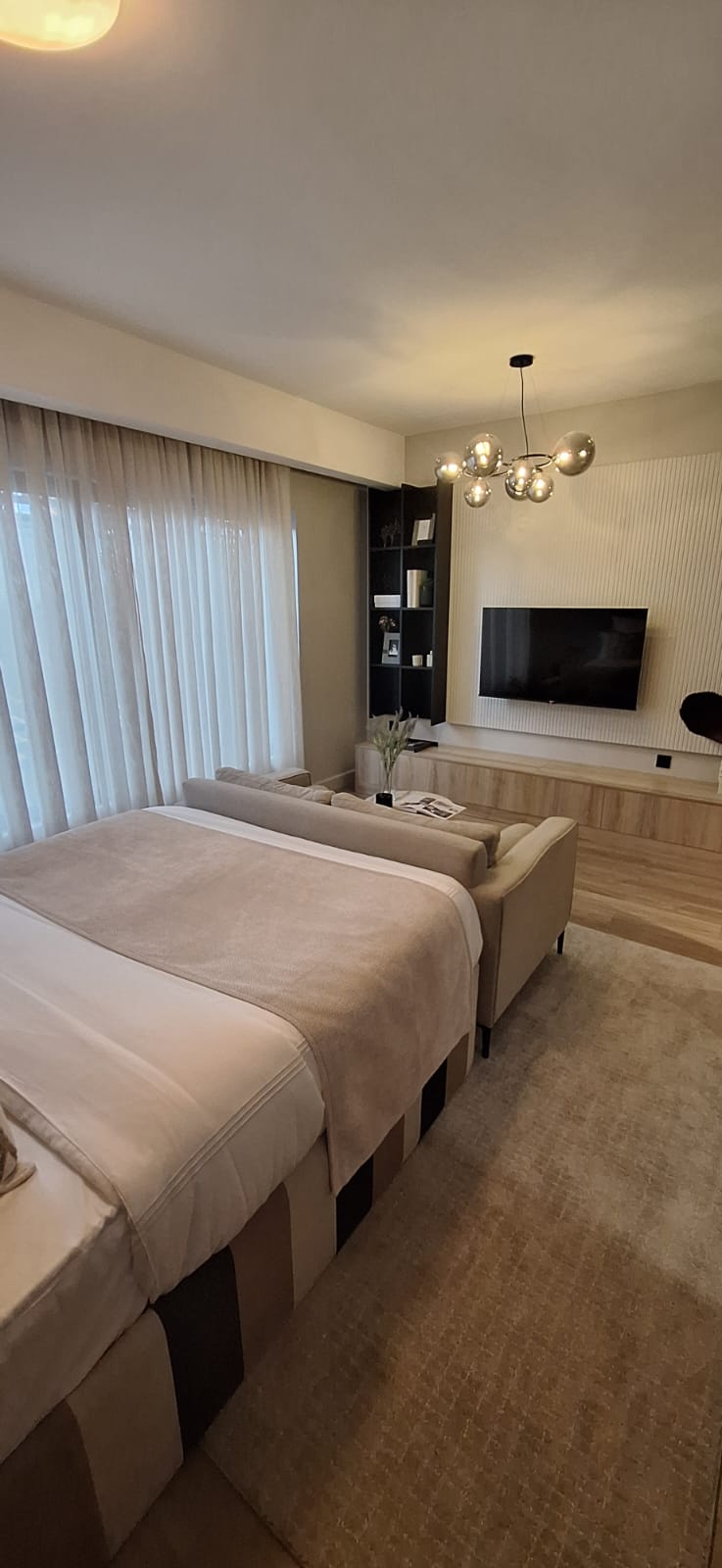 Elegant studio with bright living space, fully furnished bedroom, and kitchen. Take in the city view from the balcony and enjoy the pool, gym, and safe parking.